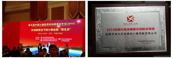 2015年3月28日,第五届中国小额信贷机构联席会年会在北京召开。温江区金穗信小额贷款有限公司获颁“2014中国小微金融最佳风险控制奖”奖牌。
