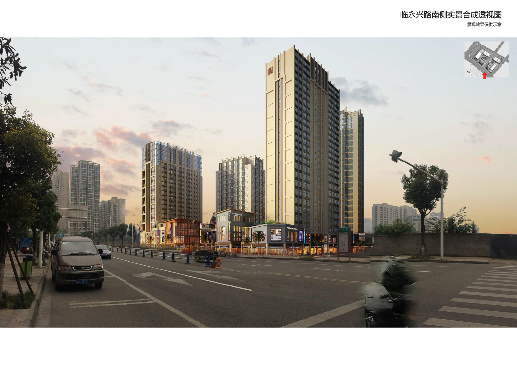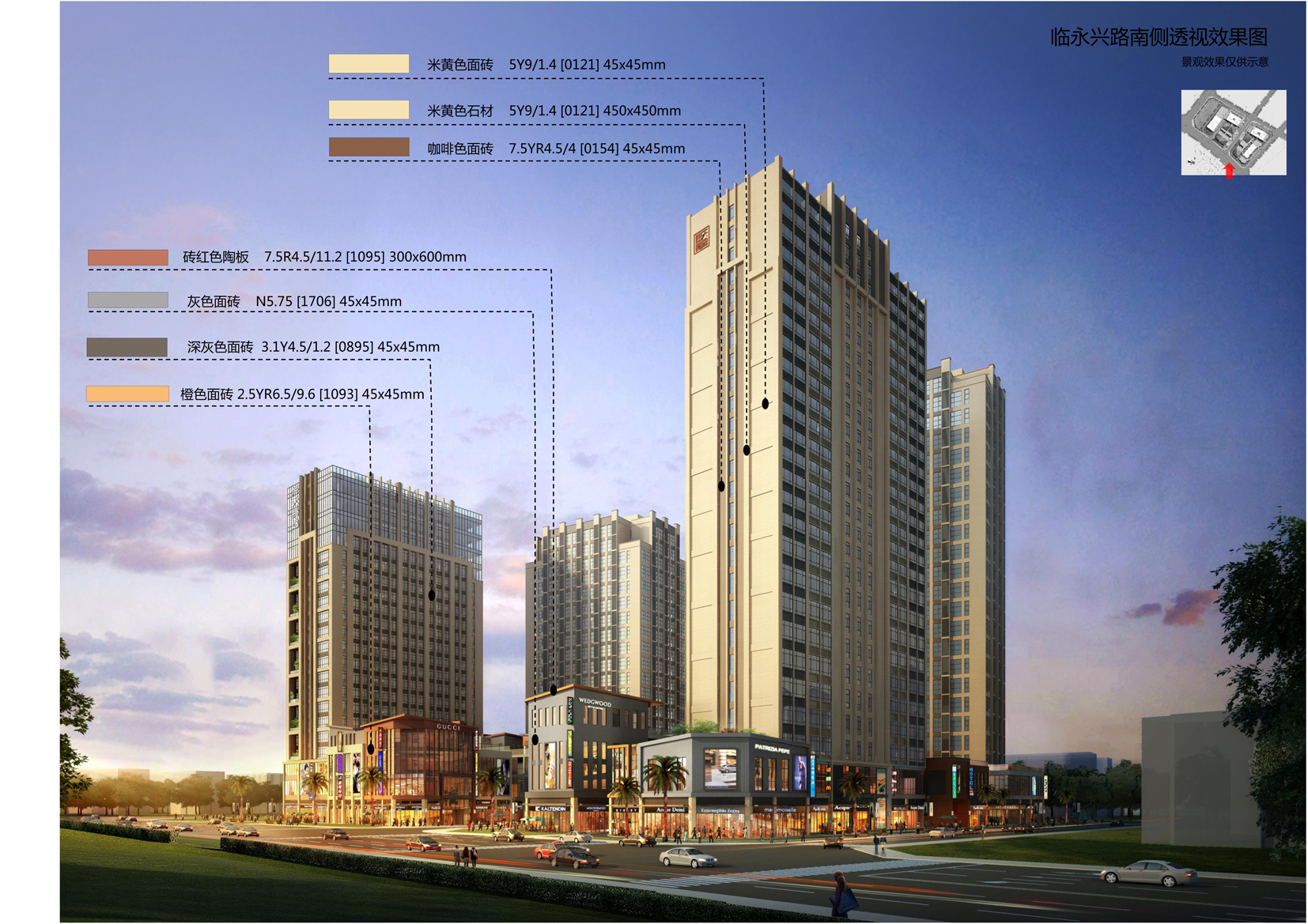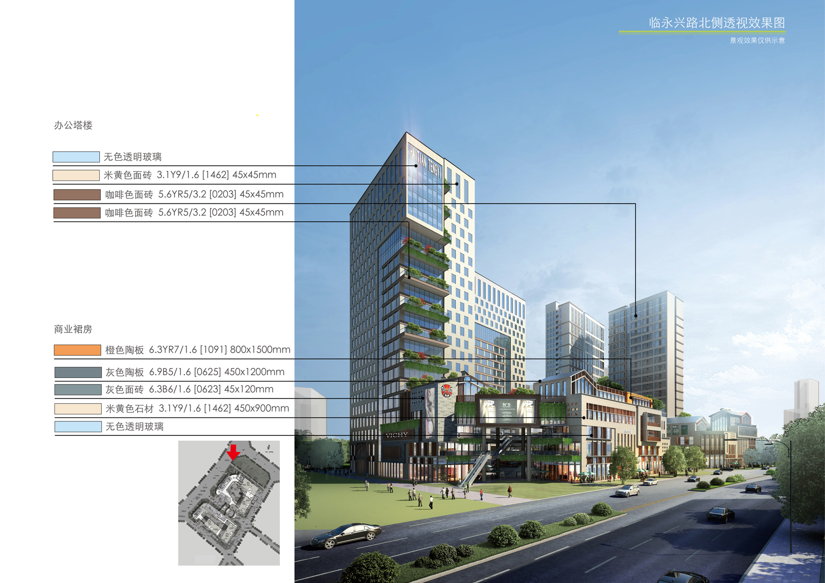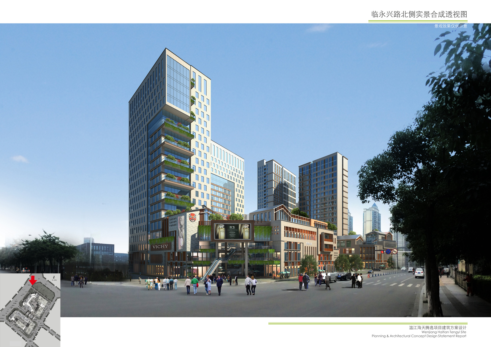 附件一:原方案总平图及效果图 附件二:现方案总平图及效果图